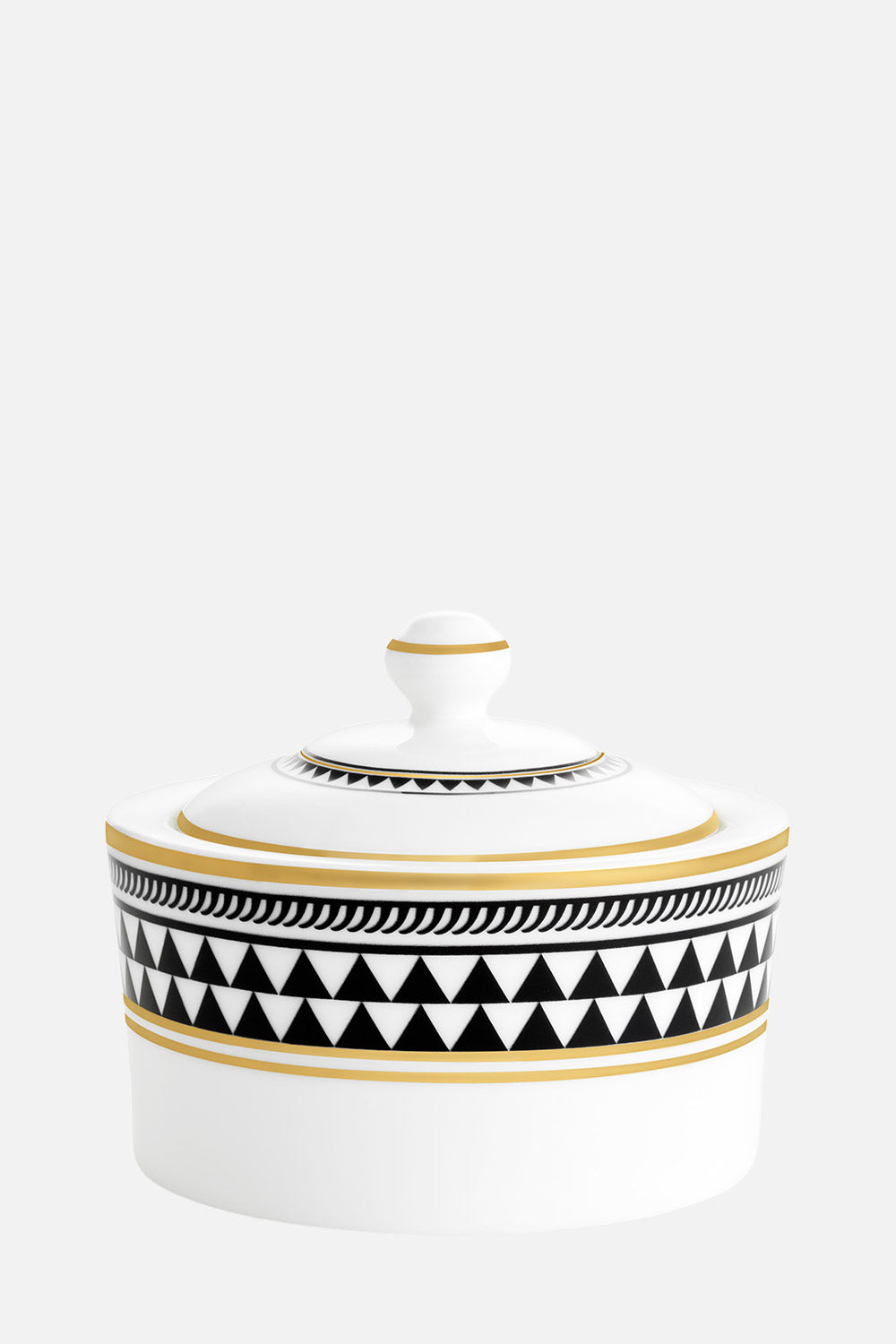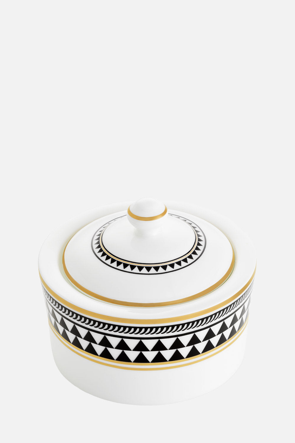 The Elie Saab Mosaique de Baalbek Sugar Pot (22cl) combines Roman-inspired artistry with refined luxury. Crafted from fine bone china, it features a black-and-white mosaic design with a gold rim—perfect for elegant tea or coffee service and beautifully presented in a gift box.
