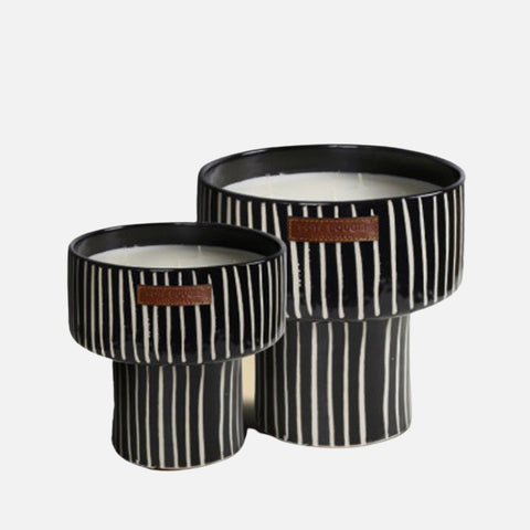 Zebra Bowl Candle — a bold, refined design piece that pairs striking black-and-white zebra stripes with the delicacy of Moroccan craftsmanship. Each ceramic bowl is hand-thrown, glazed, and painted by skilled artisans in Marrakech, making every candle truly one-of-a-kind. Filled with 100% vegetable wax and a fragrance composed in Grasse, it adds a modern accent and a luxurious scent to any interior.