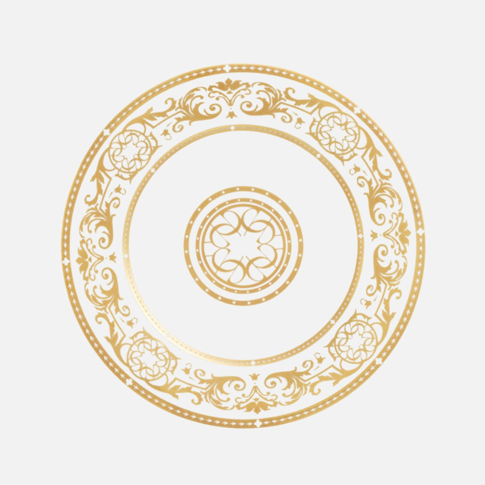 Infuse your table with opulence. Crafted from fine bone china, this refined plate features an intricate Baroque gold motif framing a pristine white background—paying homage to 17th-century grandeur in a compact, versatile size.