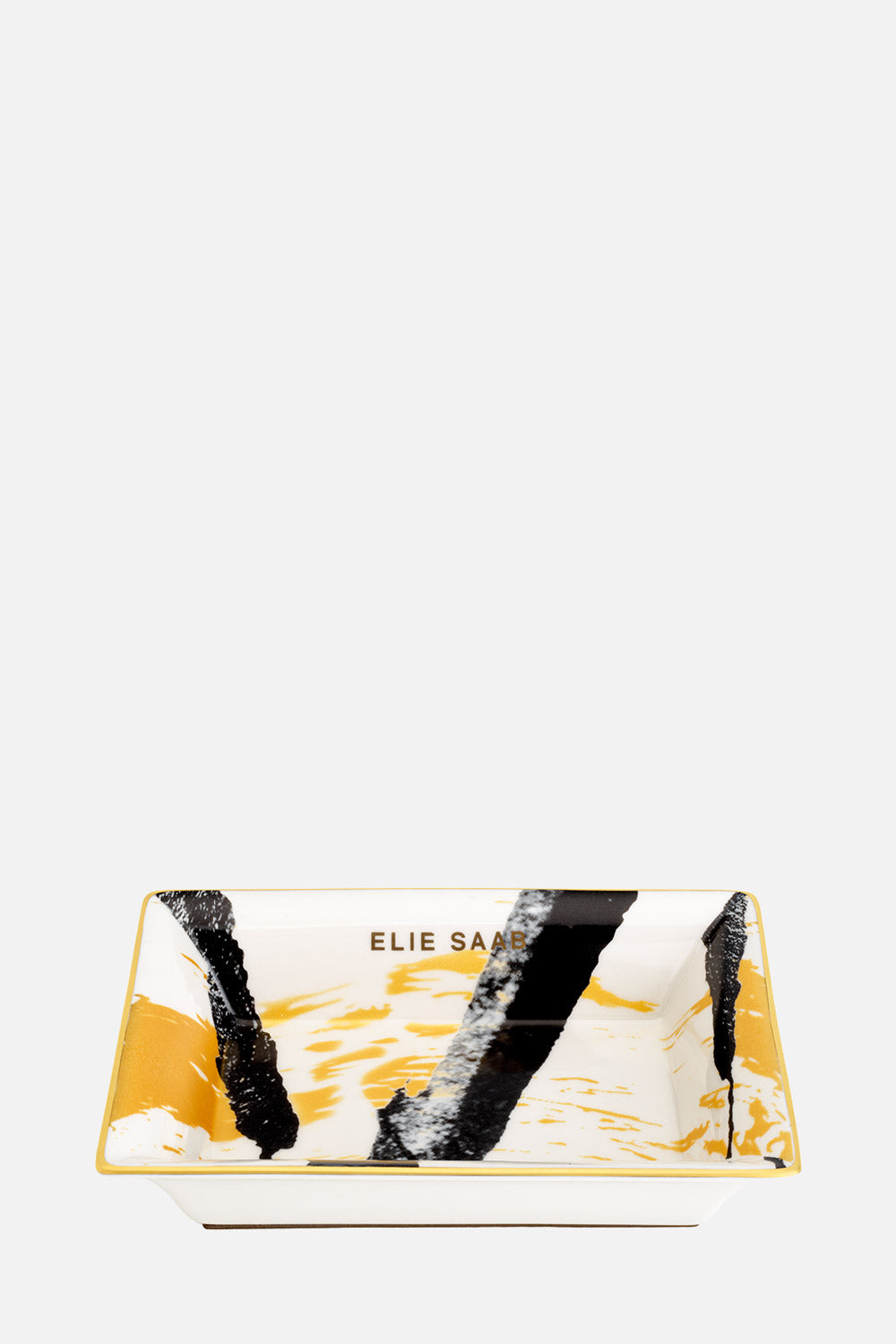 he Elie Saab Golden Sumi-e Small Vide-Poche (12x16cm) blends Japanese-inspired artistry with modern luxury. Crafted from fine black porcelain with gold brush strokes and an Italian leather base, it’s perfect for holding jewelry, keys, or coins with refined elegance.