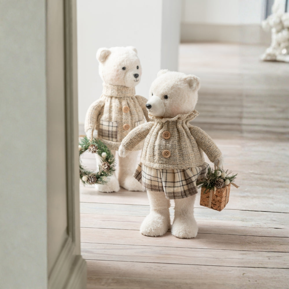 Add a touch of charm to your home with this adorable Bear Boy & Girl Plush Decor Set, crafted in soft polyester with an elegant ecru and beige color palette. Perfect for shelves, nurseries, side tables, and seasonal displays, these stylish plush figurines bring warmth and personality to any indoor space.
