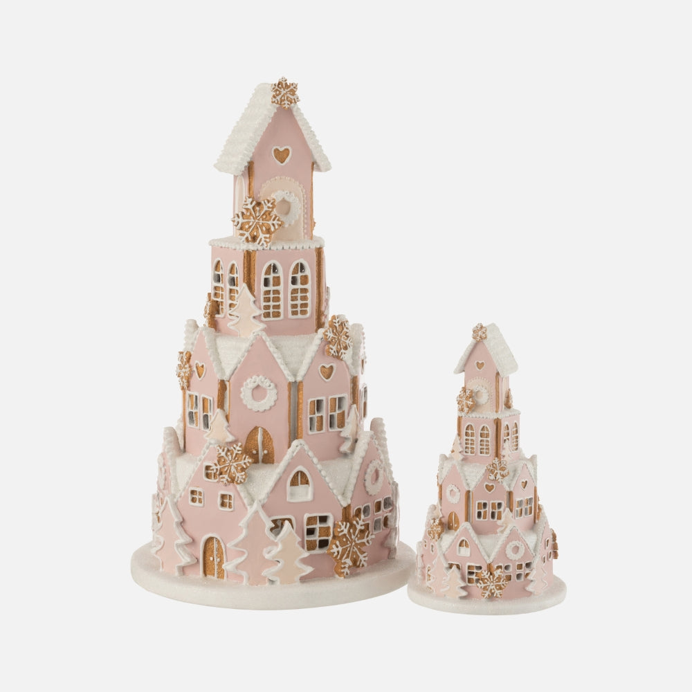Bring home the sweetness of the season with the Large Pink & White Gingerbread House—a timeless holiday décor piece that delights both kids and adults.
