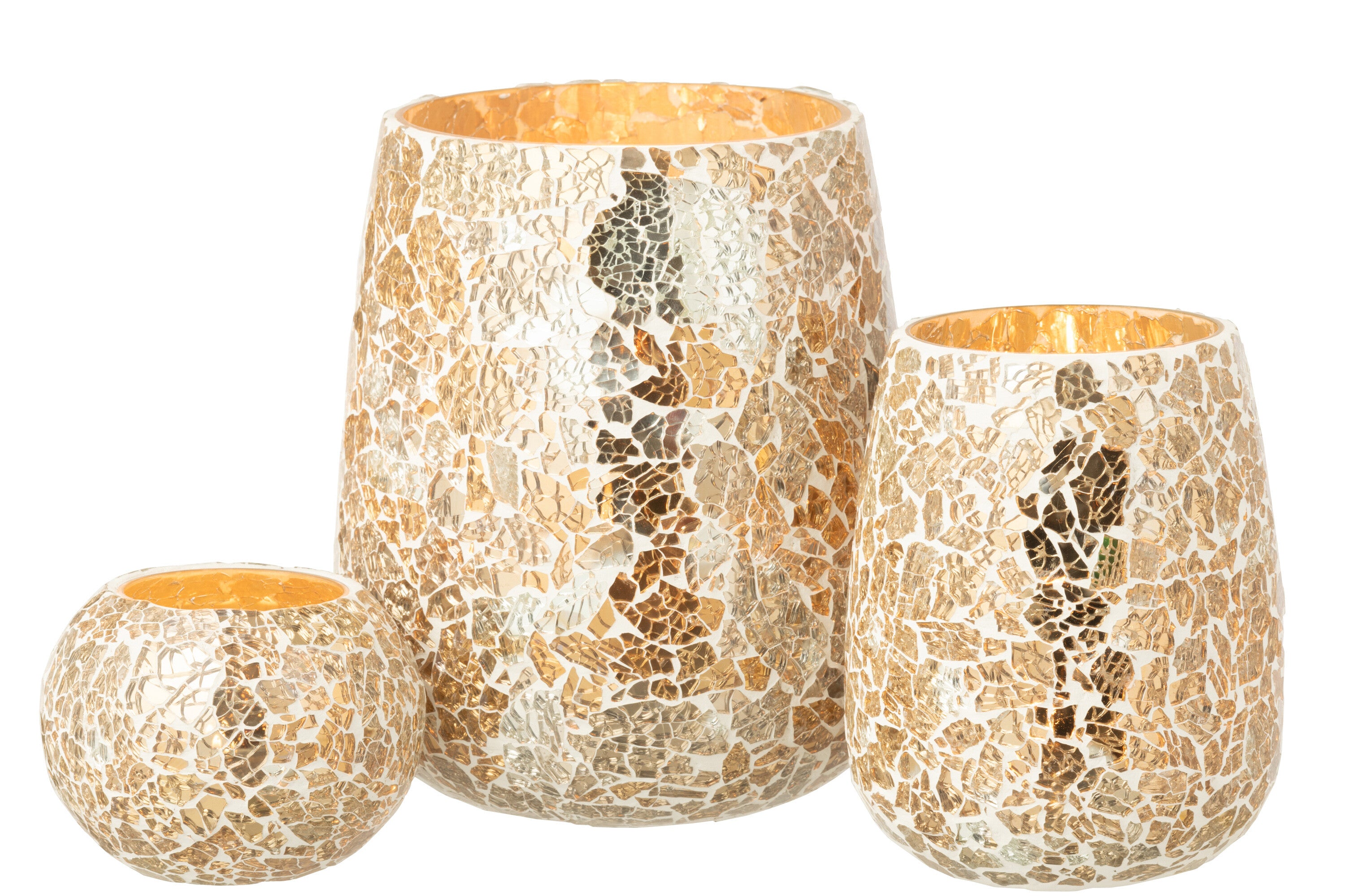 Tall Crackled Glass Candle Holder – Gold Decorative Lantern