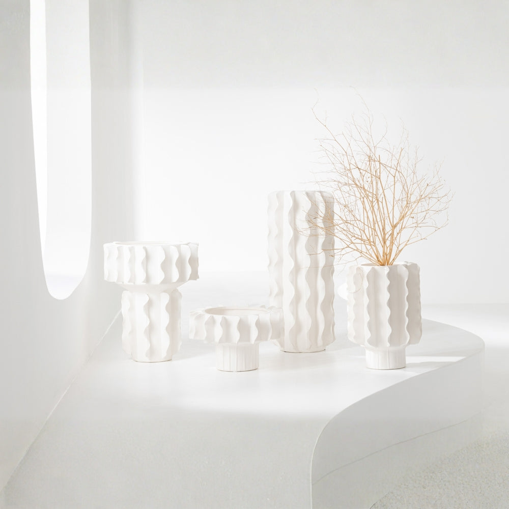 White Helix Cylindrical Ceramic Vase - White