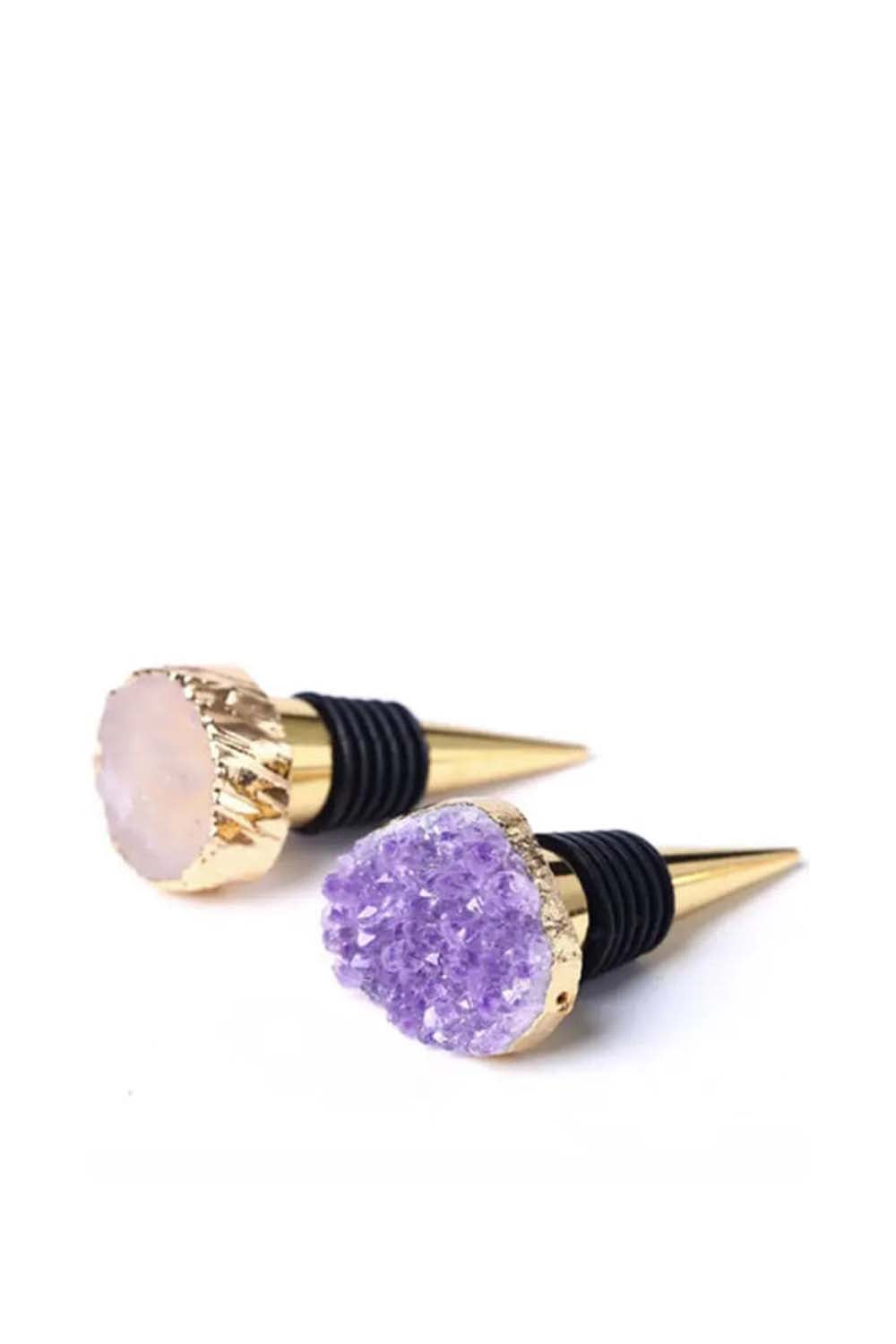 A beautifully curated set featuring four White Quartz coasters with silver edging and two crystal bottle toppers crafted from Rose Quartz and Amethyst. Designed to bring elegance and natural energy to your tabletop, each piece is uniquely shaped from raw, uncut stones — no two are exactly alike.