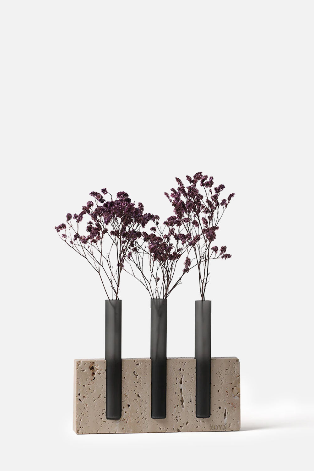 Zoya Stones – Travertine Marble Base with Glass Tubes