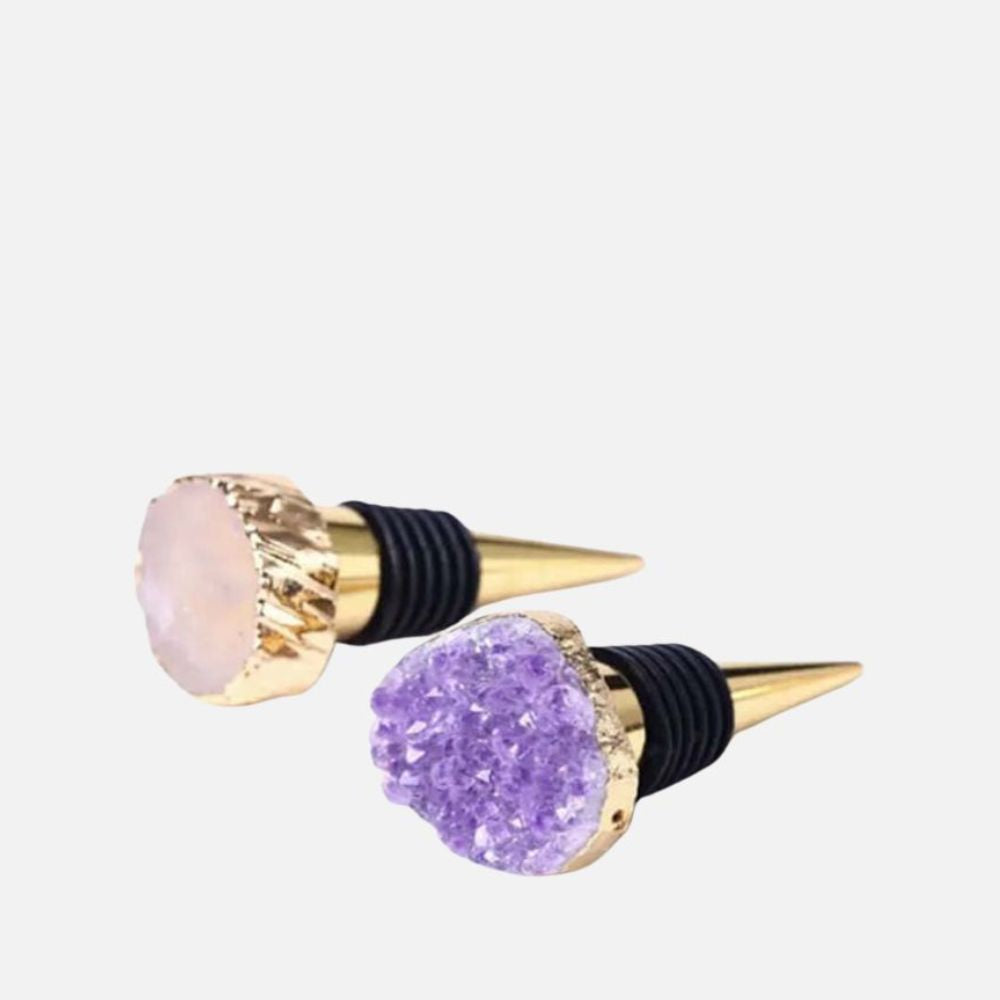 A beautifully curated set featuring four White Quartz coasters with silver edging and two crystal bottle toppers crafted from Rose Quartz and Amethyst. Designed to bring elegance and natural energy to your tabletop, each piece is uniquely shaped from raw, uncut stones — no two are exactly alike.