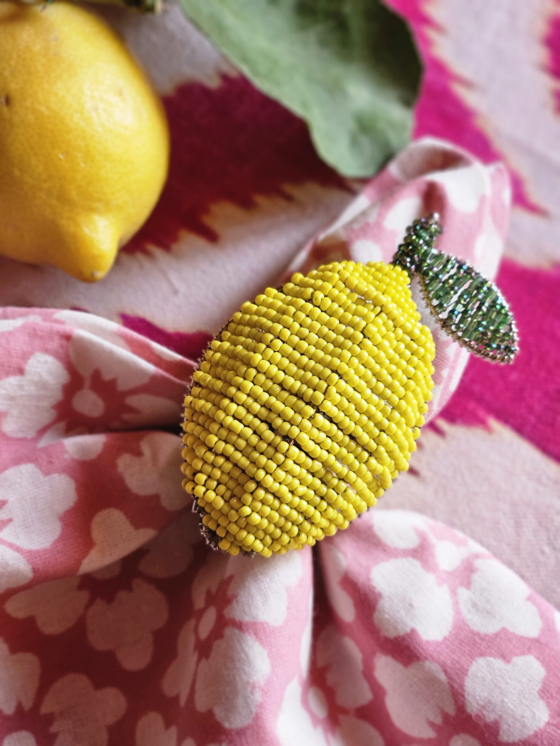 Add a tasteful splash of sunshine to your next gathering—these artisan beaded lemon napkin rings blend craftsmanship and charm for a tablescape that feels effortlessly joyous.
