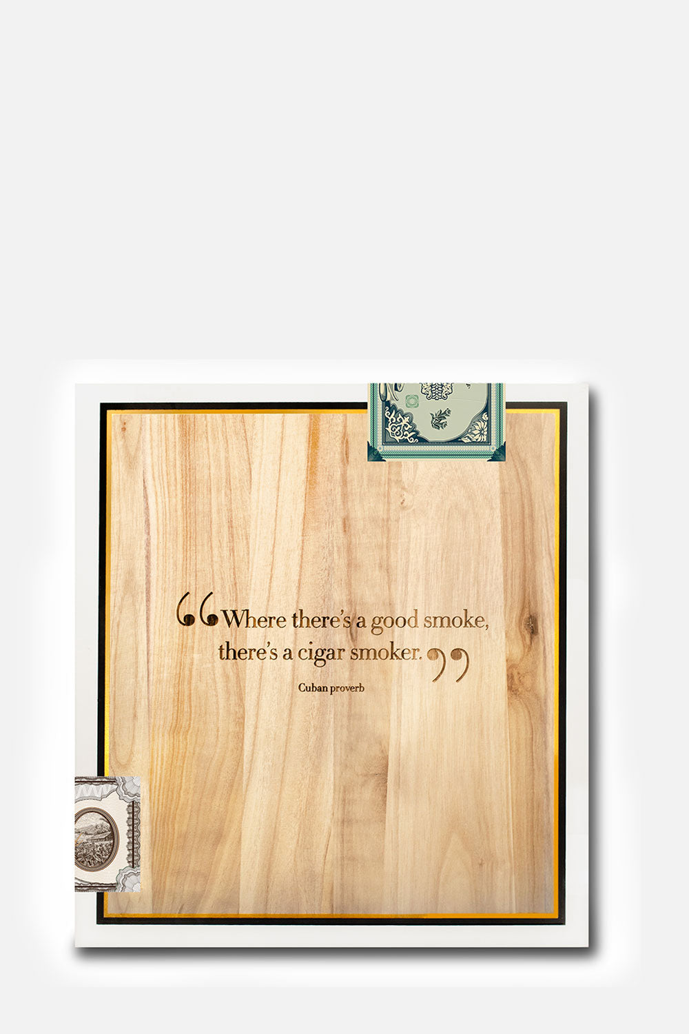 Hand-bound and presented in a traditional wooden cigar box, this collectible masterpiece includes authentic cigar bands and hand-tipped images printed on premium art paper—an elegant tribute to the craftsmanship of cigar culture.