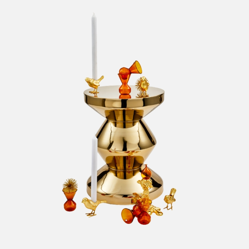 Crafted from 100% recycled plated metal, this glossy statement piece balances sustainability with high design. Its dynamic zigzag shape and rich color palette allow it to blend seamlessly into both contemporary and eclectic interiors. Whether it’s styled as a striking accent seat, a bedside table, or a display stand, the Zig Zag Metal Stool brings energy, durability, and charm wherever it goes.