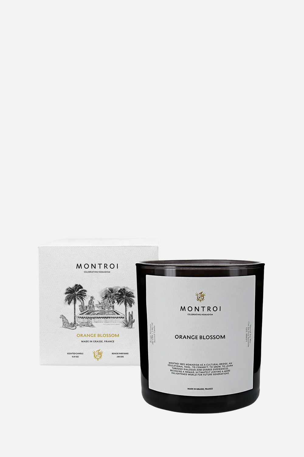 Bright and uplifting, the Orange Blossom candle blends orange flower and petitgrain with soft rose and musk—a fresh tribute to Marrakech riads. Poured in Grasse, France with natural soy wax, it delivers a clean, elegant burn in a sleek lidded glass jar.