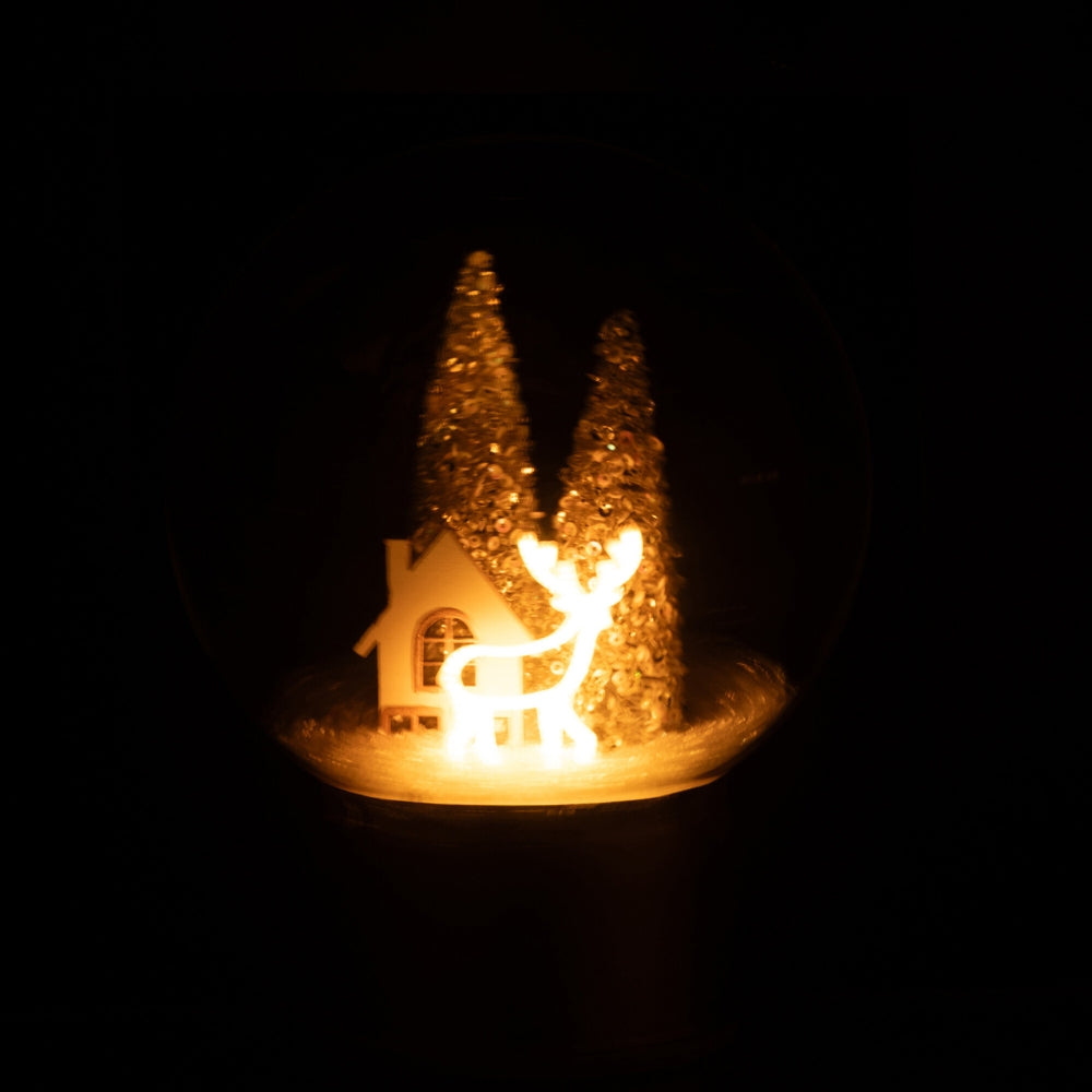 Standing 21 cm tall, this ornament is lightweight yet durable and ideal for tabletop displays, shelves, or mantelpieces. Its energy-efficient LED lights create a warm ambiance, bringing holiday spirit to any room.