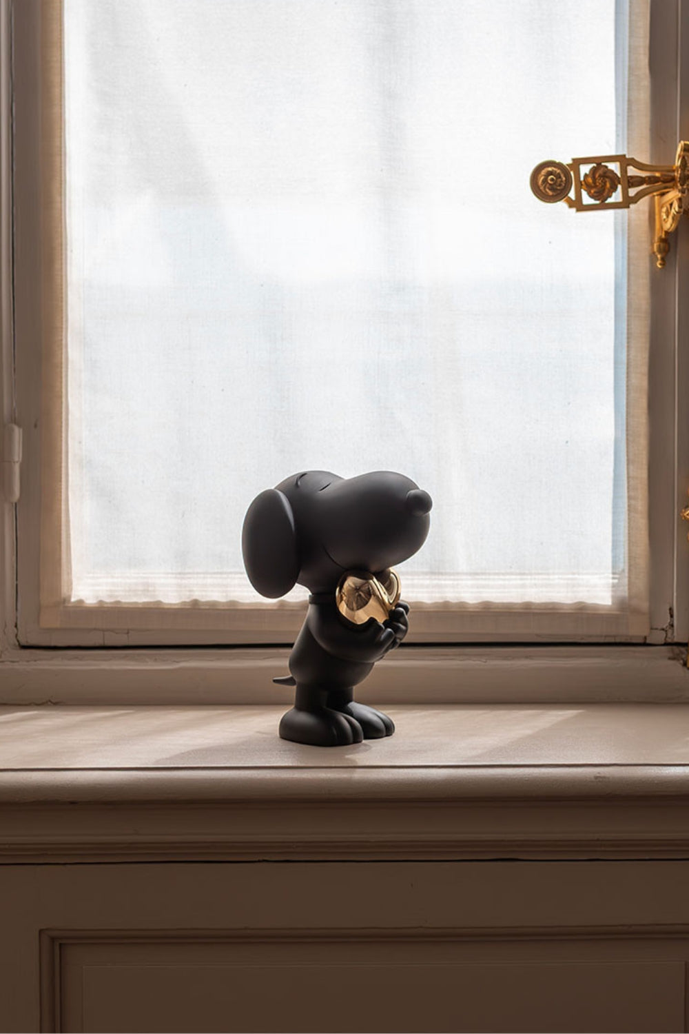 This 27 cm resin sculpture captures Snoopy’s joyful spirit as he holds a beautiful chromed heart close to his chest. With its elegant Matt & Chromed finish, it brings a warm and playful touch to any modern decor or art collection.