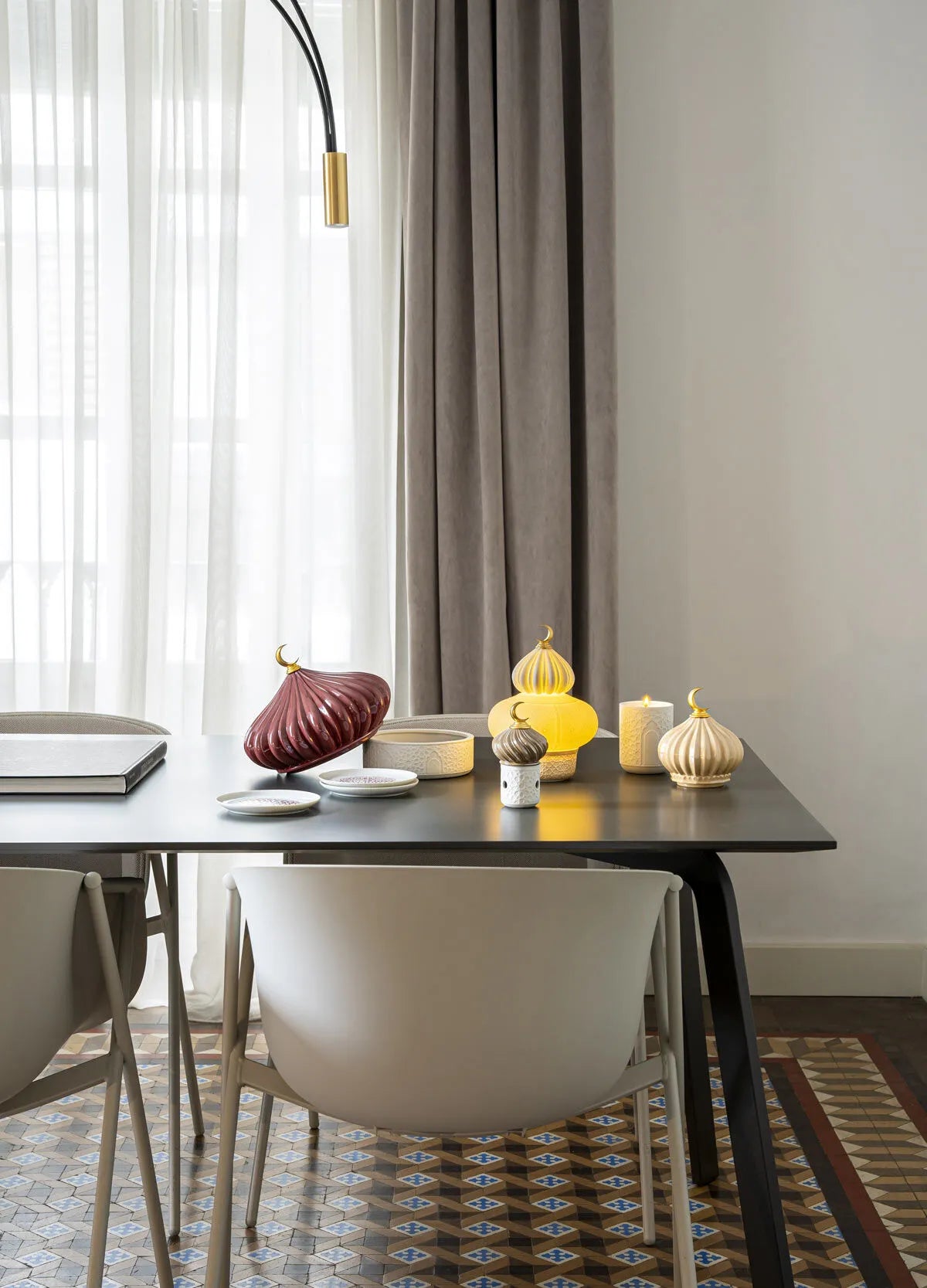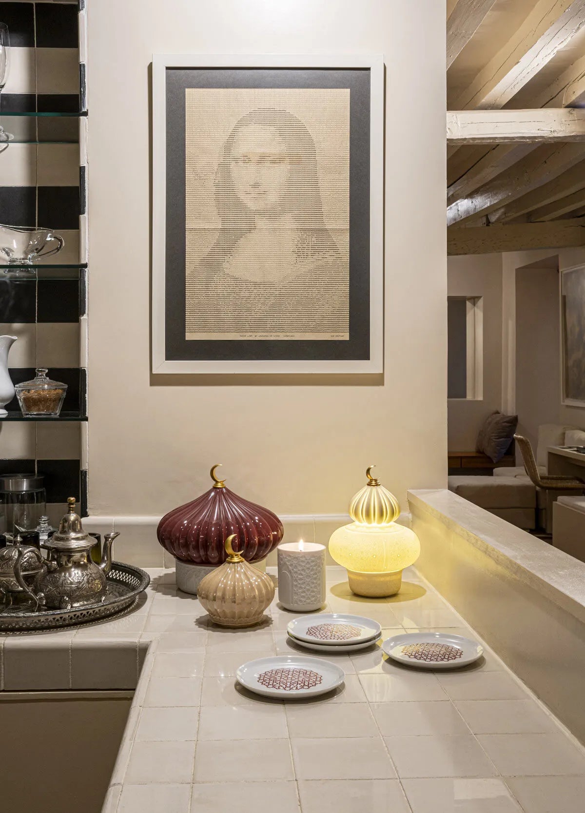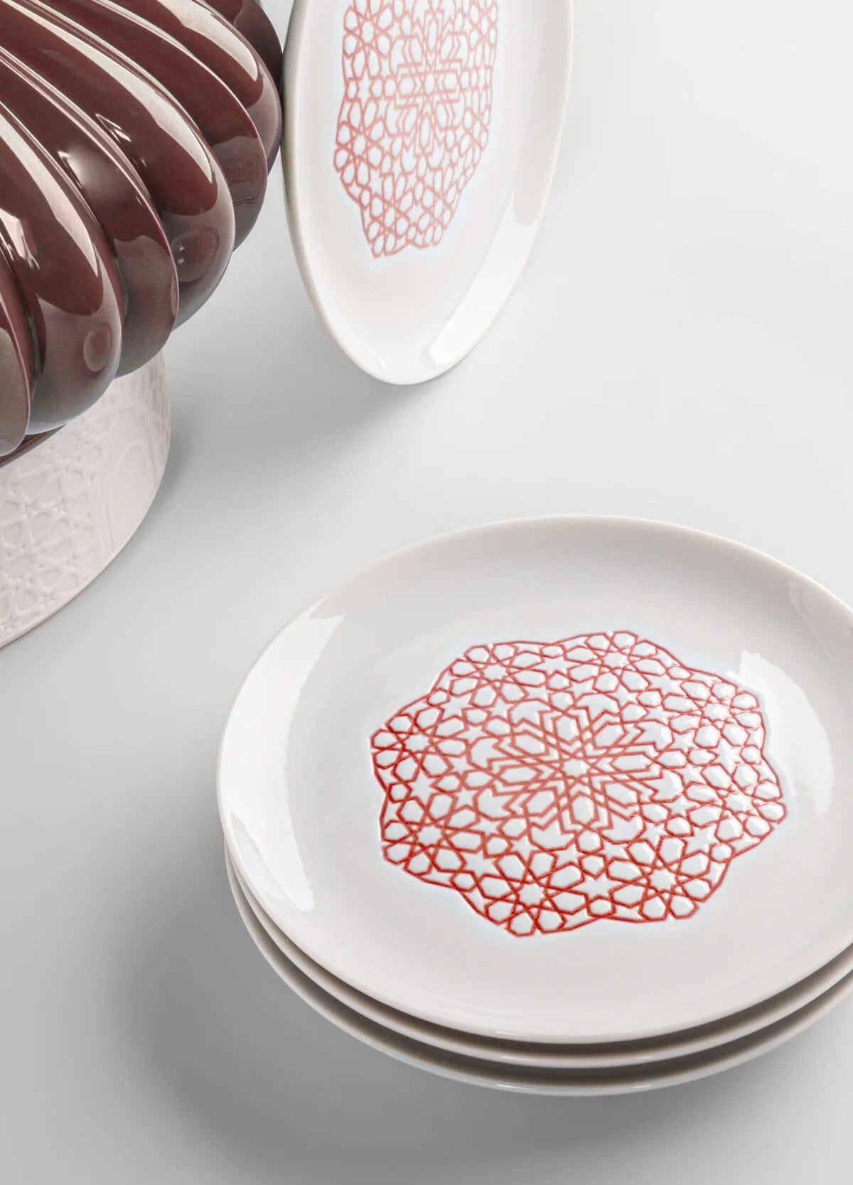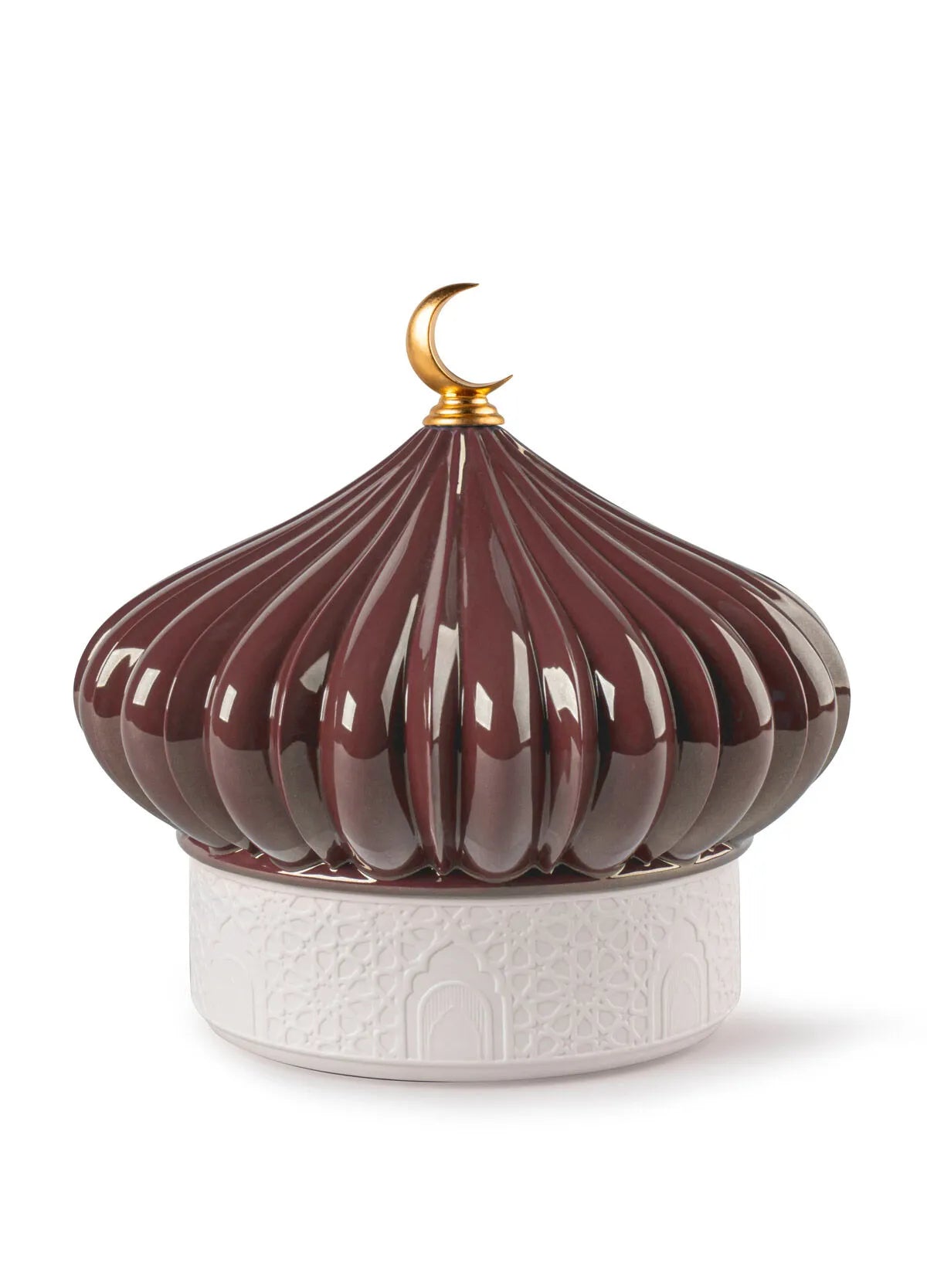 The Majestic Nights box is an exceptional piece that blends tradition with contemporary design. Its dome, adorned with a vibrant garnet glaze and a golden luster crescent, protects four white porcelain plates featuring geometric engravings and a glazed finish. Crafted with artisanal precision, this box captures the spirit of a thousand and one nights, offering both functionality and sophistication. Perfect for celebrations or as a decorative element, it transforms any moment into an unforgettable experience.