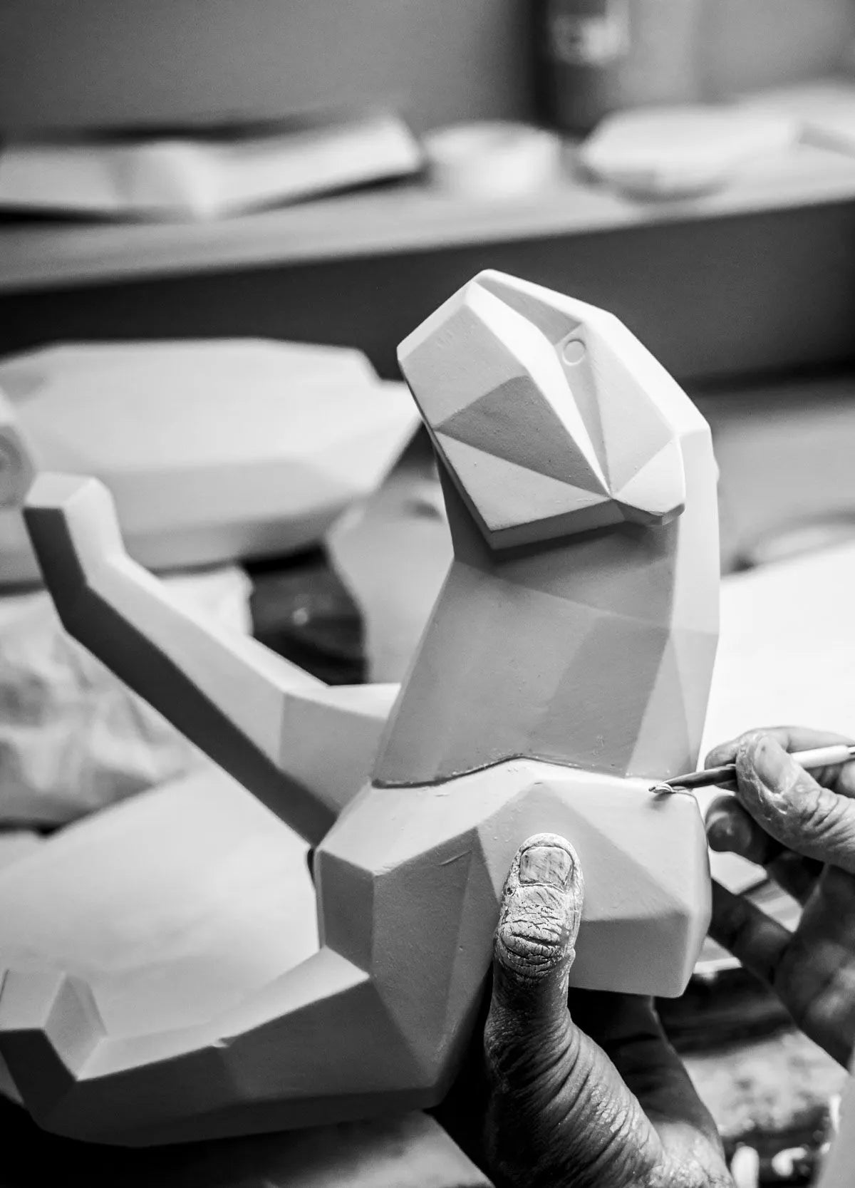 The Origami collection is adding a new version of Panther, now with an elegant golden metallic finish. Like the rest of the pieces in this collection, it is a contemporary innovative reinterpretation of the traditional Japanese art of origami, in which the geometric forms produced by folding paper are transformed into powerful sculptural and decorative facets.