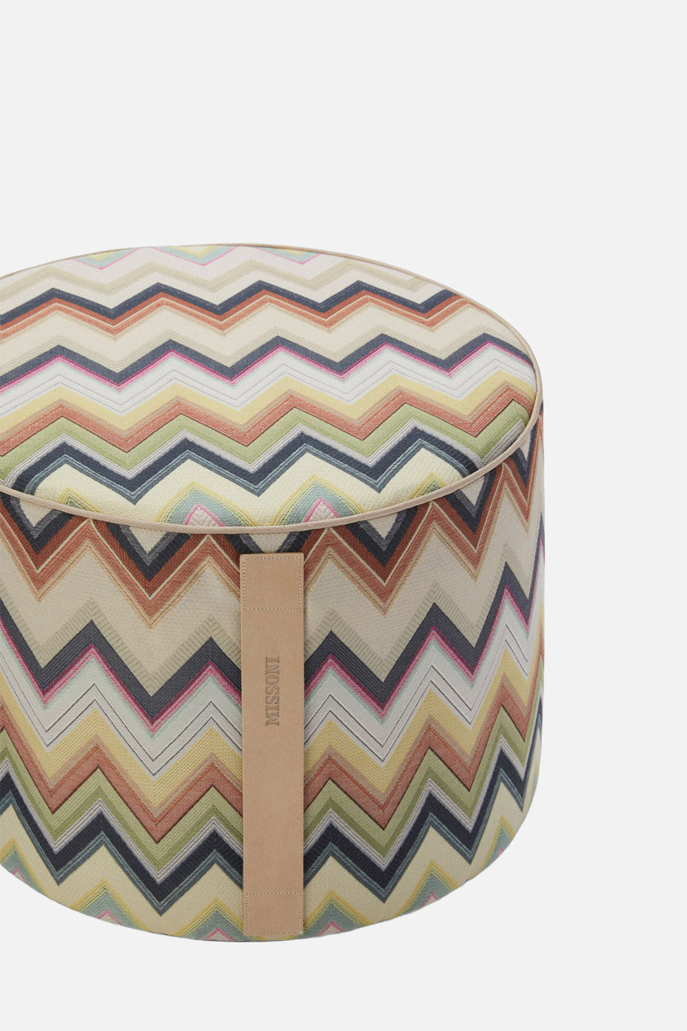 Crafted from a chevron-patterned cotton blend, the Agadir cylindrical pouffe (40x30 cm) combines style with practicality. Detailed with tone-on-tone piping and a logo-printed label, it’s completed by a suede handle embossed with the brand logo for easy portability and a refined finish.