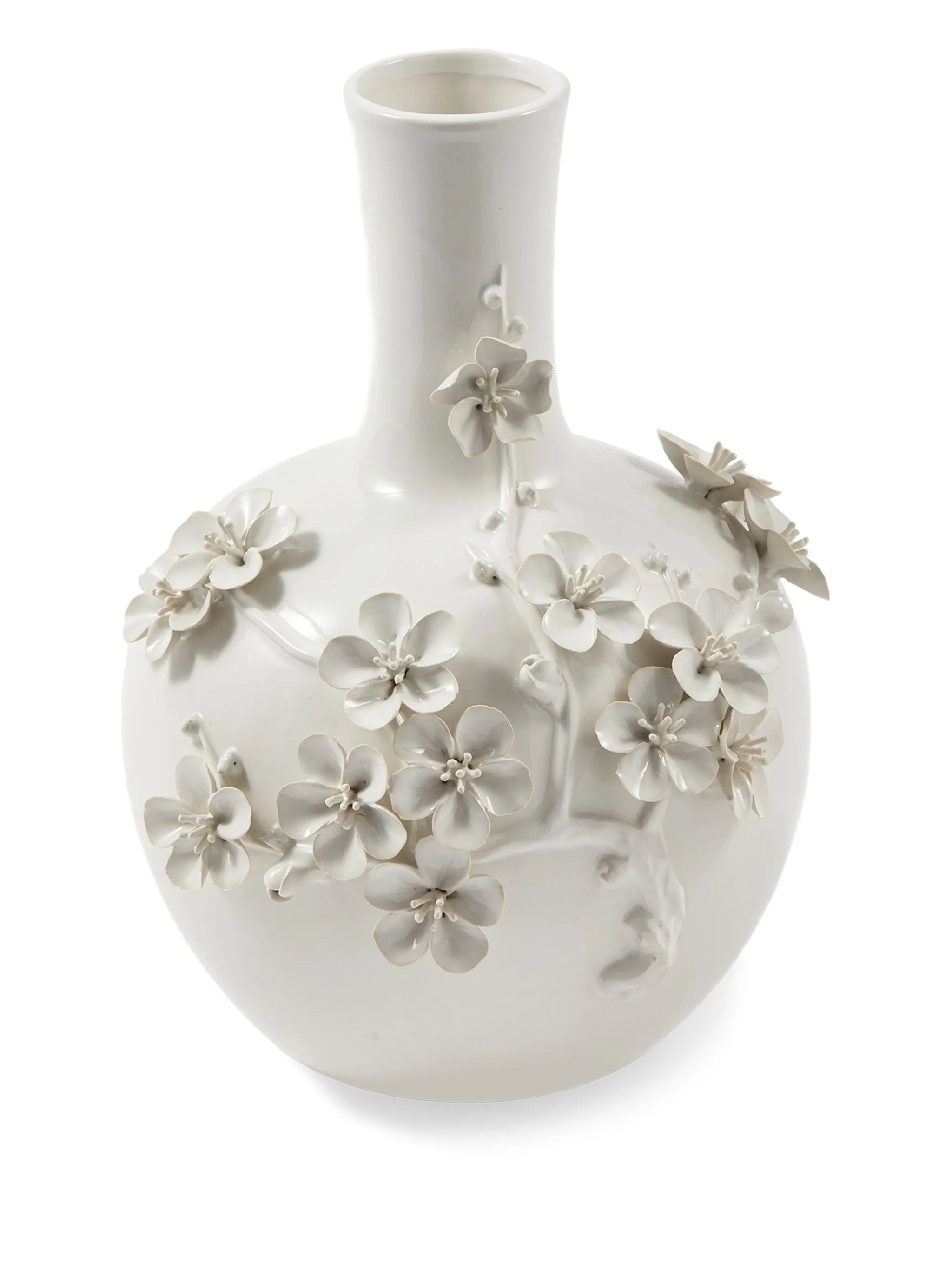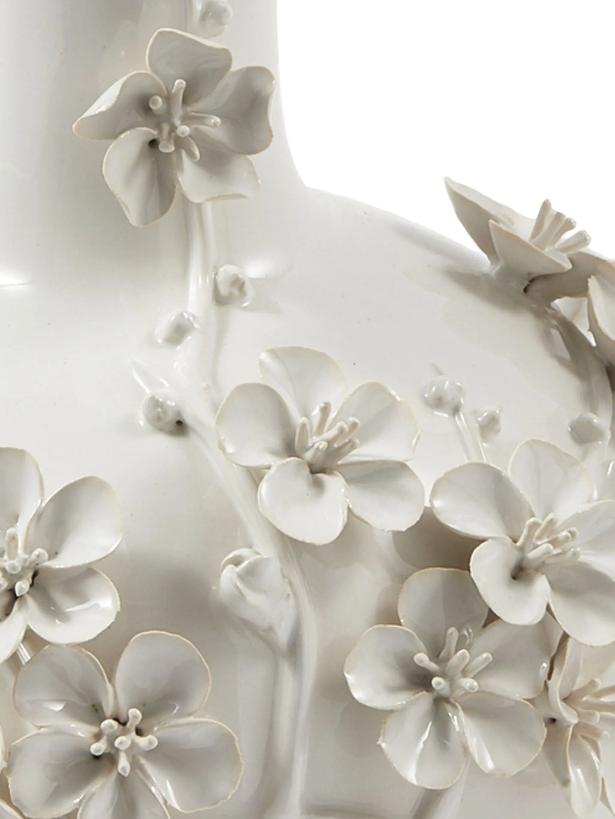 A sculptural ode to springtime elegance, this porcelain vase by POLSPOTTEN is adorned with delicate three-dimensional buttercup blossoms that bloom gracefully across its surface. Crafted in pristine white, the vase features a softly rounded body that tapers into a refined narrow neck, offering a harmonious balance between organic texture and contemporary form. A poetic statement piece for any setting — whether styled with fresh stems or displayed as a standalone objet d’art.