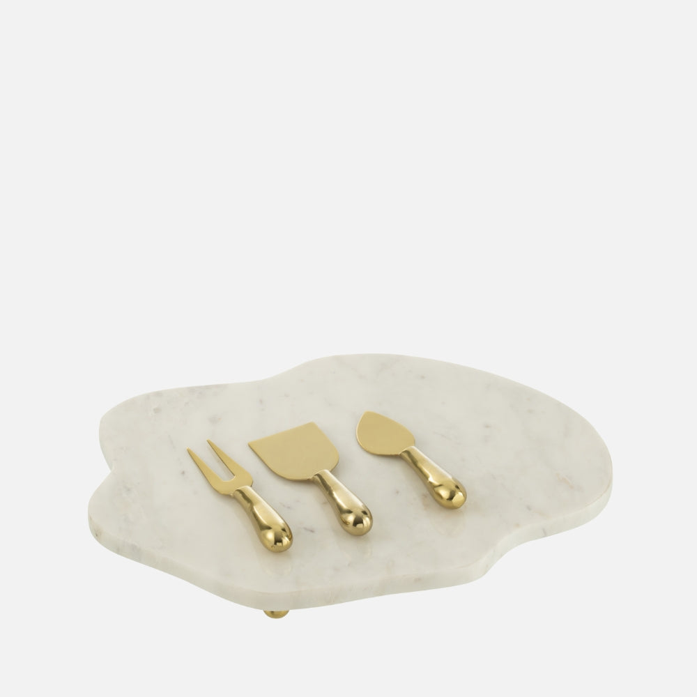Elevate your hosting experience with the Irregular Marble Cheese Board with Cheese Knife, a luxurious serveware piece crafted from premium white stone and accented with elegant gold detailing. Its unique irregular shape adds a modern, artistic touch, making it the perfect centerpiece for entertaining, gifting, or enhancing your kitchen décor.